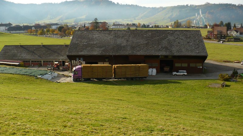 Im Hintergrund die Skischanzen von Einsiedeln.